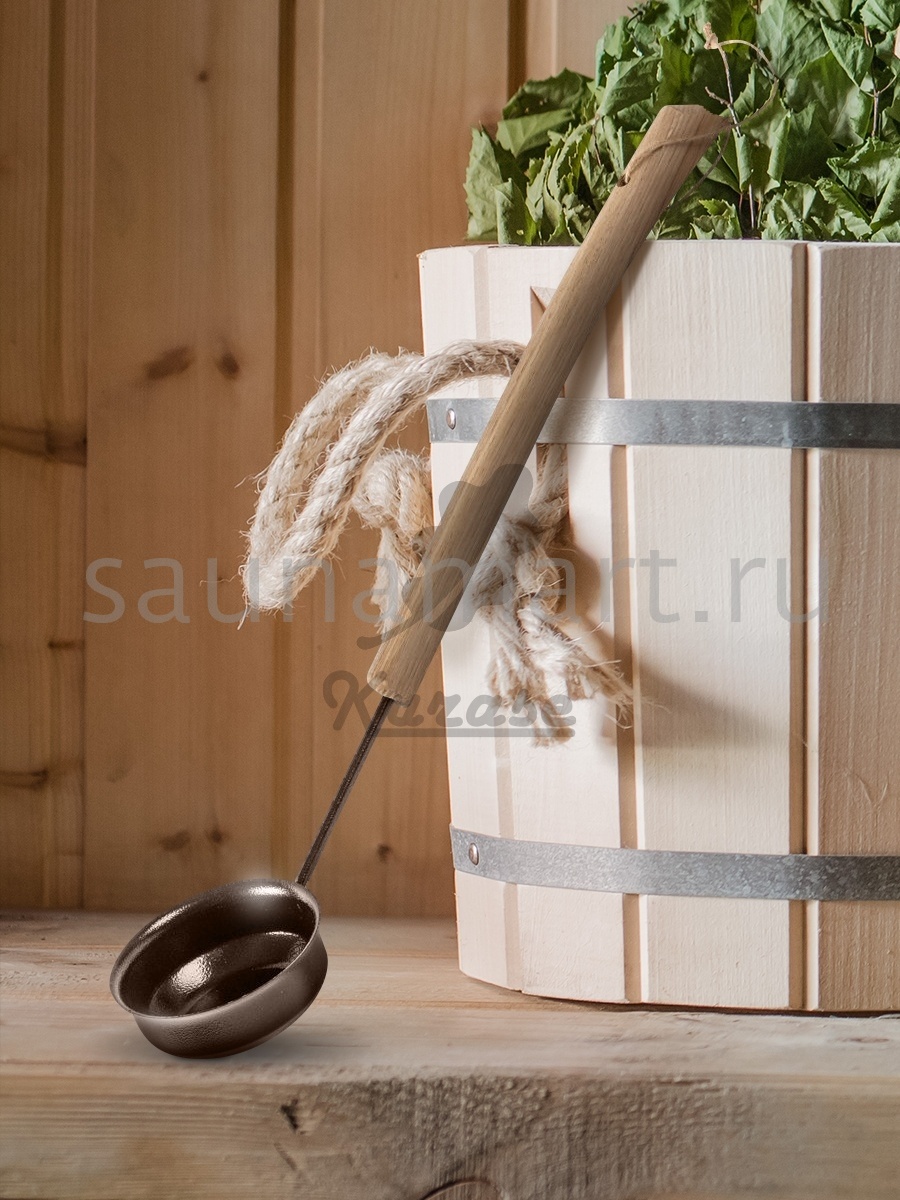 Практичный и долговечный металлический ковш с ручкой из натуральной древесины для бани и сауны, обладающей низкой теплопроводностью, которая надежно оберегает ваши руки от ожогов. Защитное покрытие металлической части ковша придаёт ему эстетичный вид и предотвращает образование ржавчины, что значительно увеличивает срок службы изделия. Черпак предназначен для подачи воды на каменку и для разбрызгивания ароматических смесей на основе травяных настоев или эфирных масел. Объем - 0,2 л.