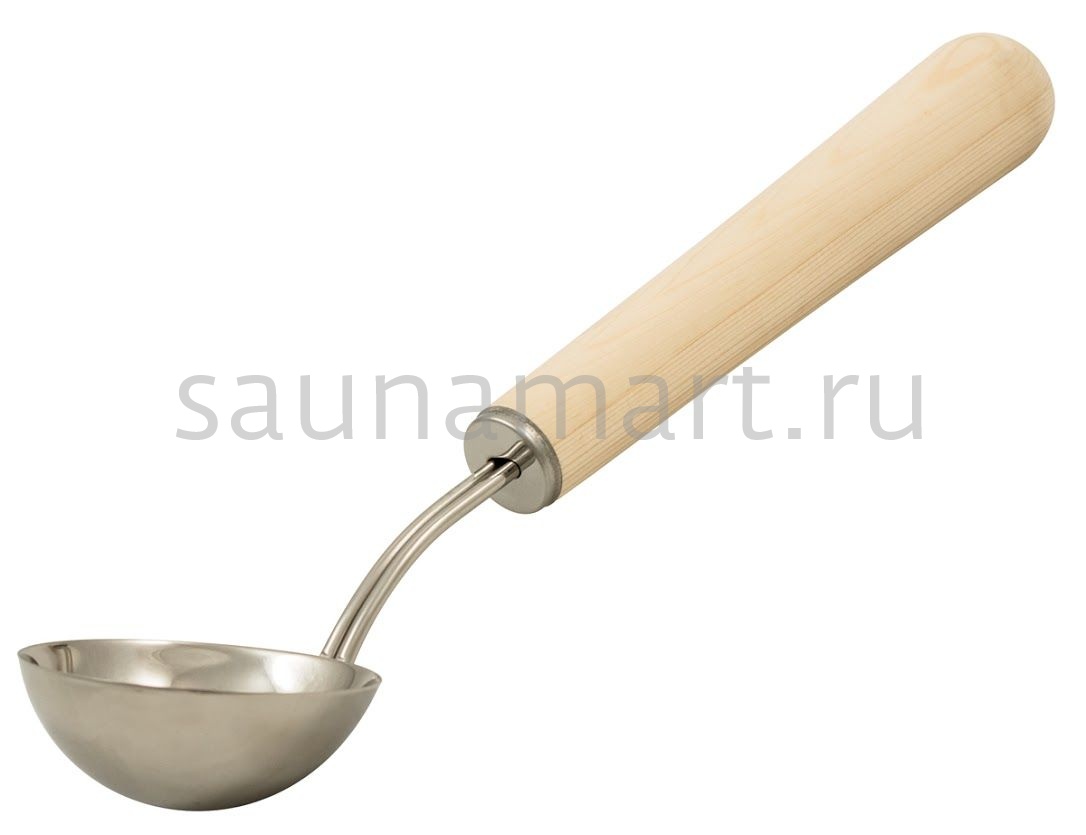 Черпак на 100 мг сделан из стали и оснащён деревянной ручкой.