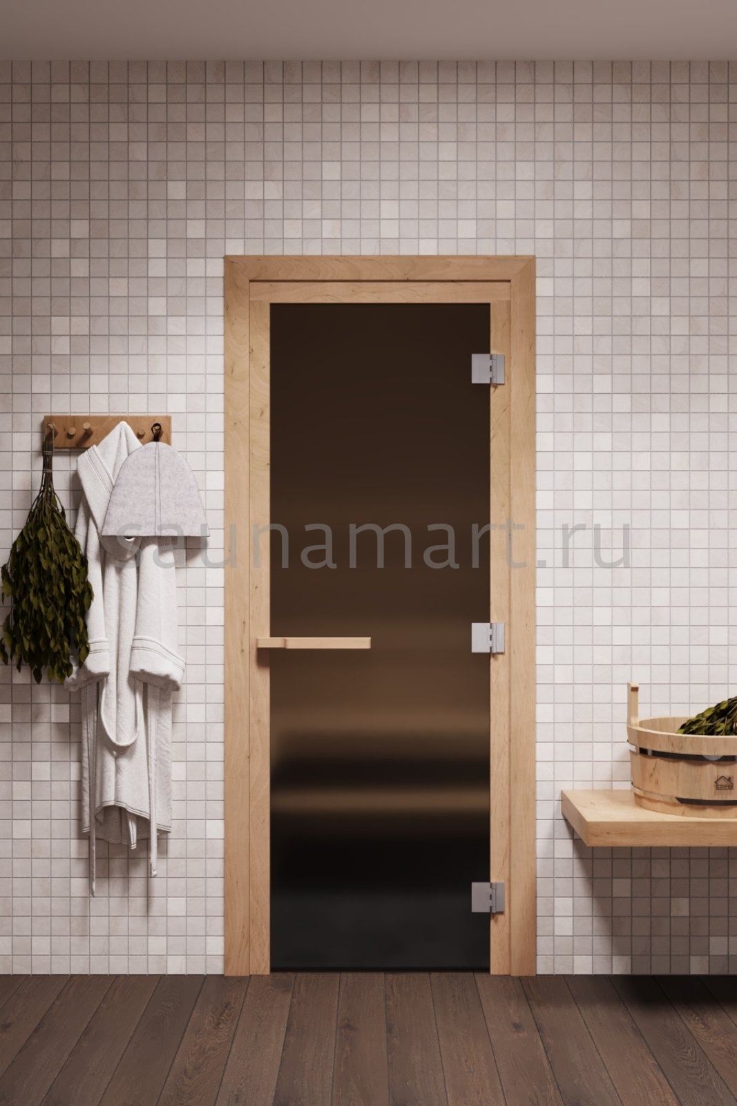 Дверь для сауны 1900х715 ПРО Бронза матовая 8мм 3 петли ольха
