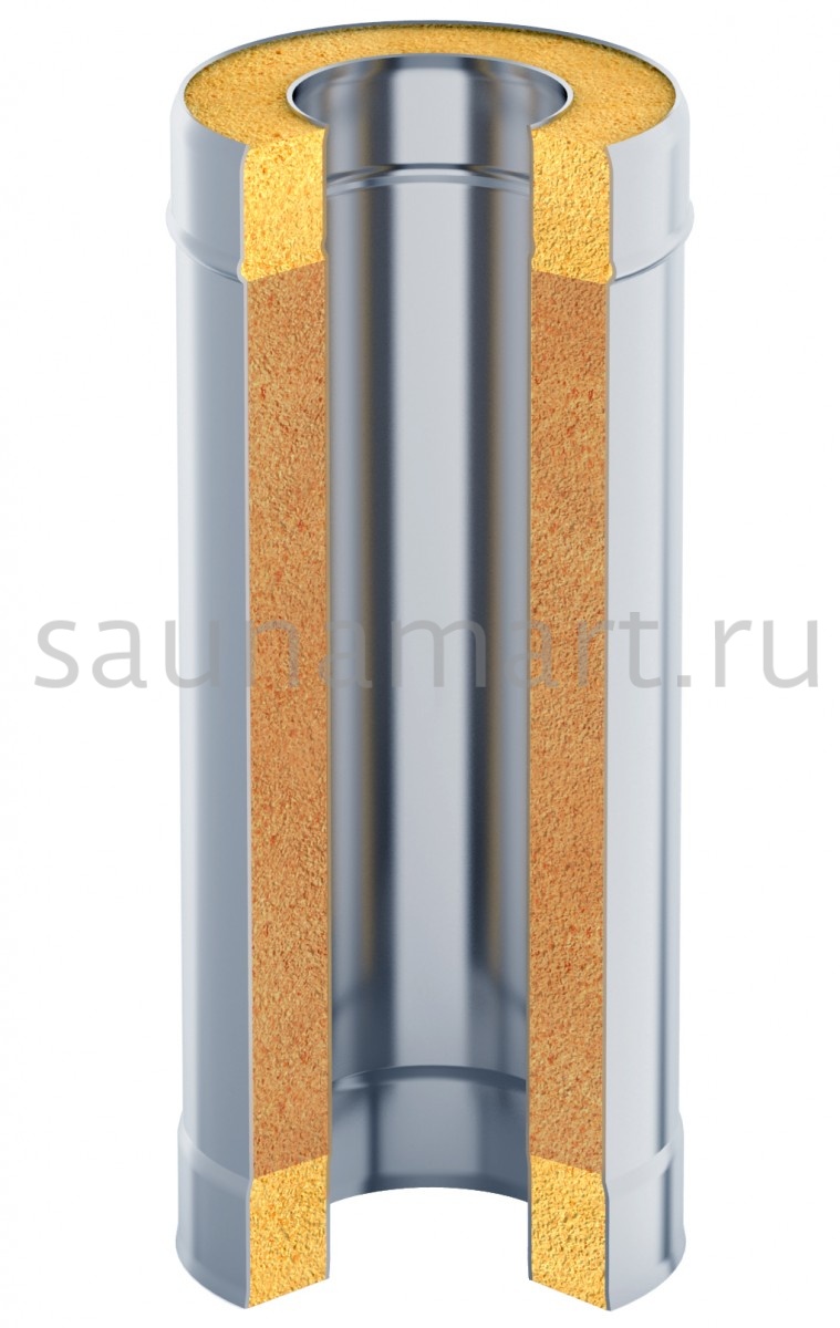 Труба-термо 1.0м 115?200 AISI 430/430 от производителя "Гефест" — базовый элемент термоизолированного дымохода. Конструкция длиной 1 метр выполнена из нержавеющей стали AISI 430 с толщиной стенок 0.8мм (внутренний контур) и 0.5мм (наружный контур), создавая эффективную воздушную прослойку между диаметрами 115мм и 200мм.