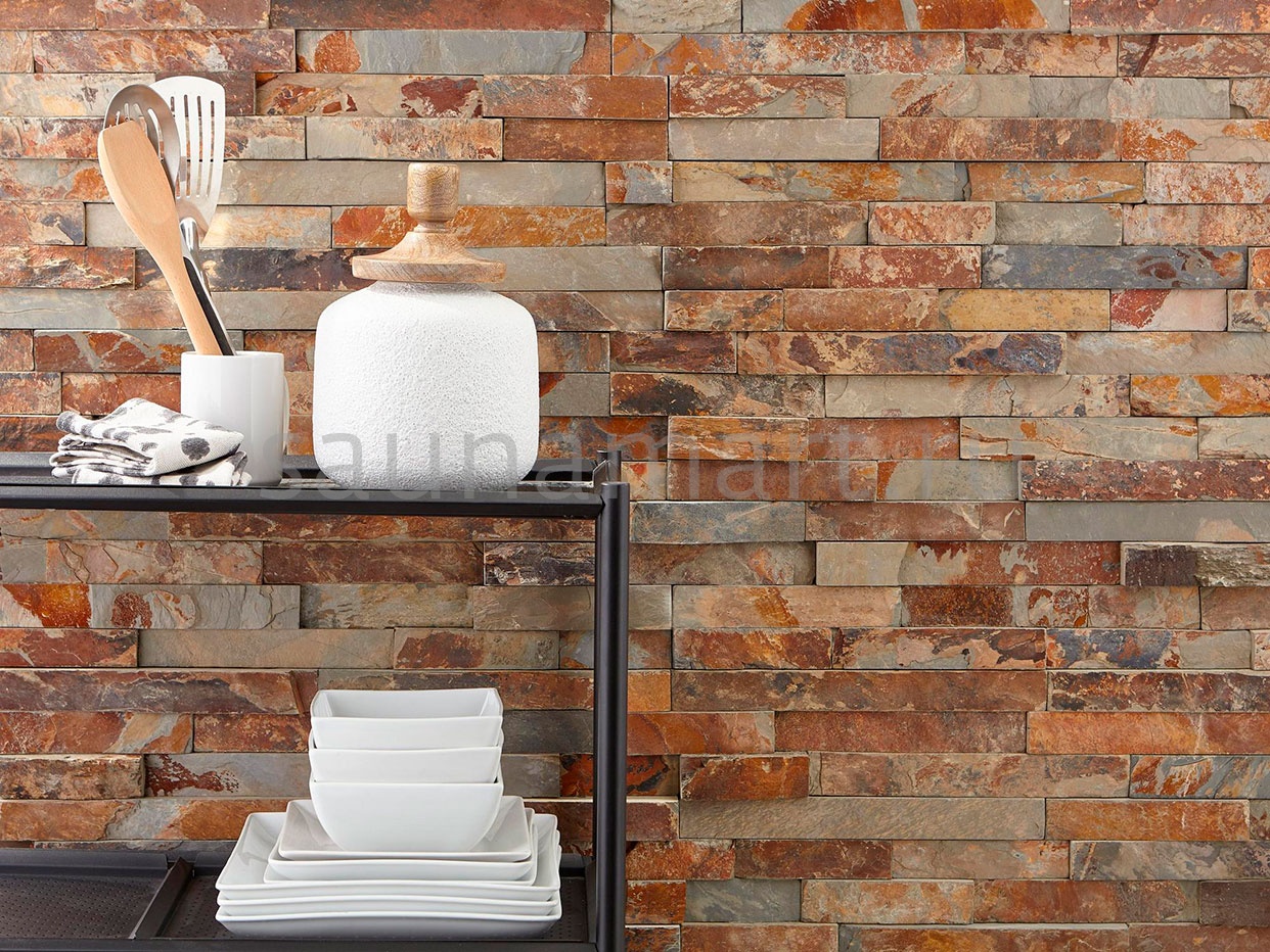 Камень натуральный Сланец Мультиколор плитка 600?150 мм — уникальный облицовочный материал с разноцветной палитрой природных оттенков. Удлинённый формат 600?150 мм создаёт эффект монументальной кладки, а вариативная толщина 10-20 мм позволяет выбрать оптимальное решение для разных задач (0.63 м? в упаковке).