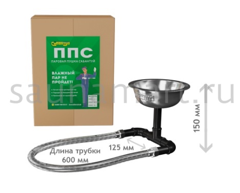 Паровая пушка Сабантуй предназначена для доставки воды на самые раскаленные участки каменки, с целью получения мелкодисперсного пара.