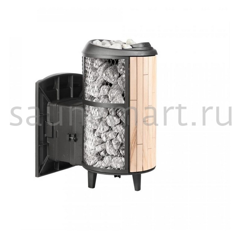 Модель с комбинированной облицовкой из нержавеющей сетки и ламелей. Особенность модели - открывающаяся дверь с ламелями. Это оригинальное решение обеспечивает быстрый прогрев парной.