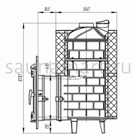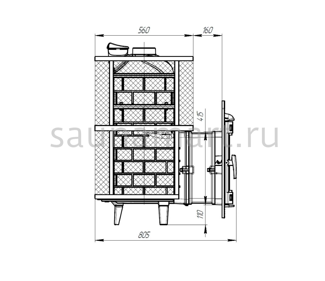 Модель с увеличенной каменкой и повышенной производительностью. Кожух печи выполнен в виде сетки из нержавеющей стали и полностью заполняется природными камнями, что обеспечивает высокую динамику нагрева парильного помещения.