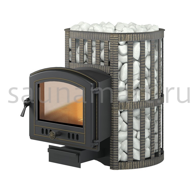 Банная чугунная печь Легенда Ковка 28 (224) укомплектована чугунной герметичной дверцей Везувий 224 с жаропрочным стеклом «SHOT ROBAX». Конвекционно-вентилируемый кожух "Ковка" изготовлен из металлической текстурированной полосы покрашенной термостойкой краской и покрытая патиной «Бронза».