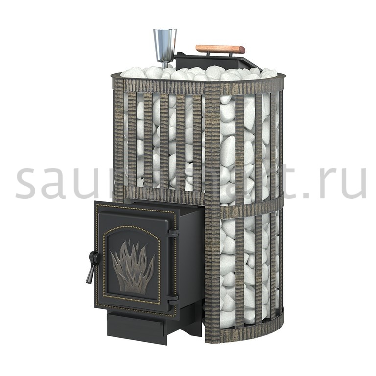 Банная чугунная печь «Ураган Ковка 22 (271)» укомплектована чугунной герметичной дверцей Везувий 271. Закрытая каменка изготовлена из стали и вмещает не менее 60 кг камней. Конвекционно-вентилируемый кожух «Ковка» выполнен из металлической текстурированной полосы, окрашен термостойкой краской и покрыт патиной «Бронза».