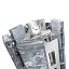 Все корпусные элементы печи выполнены из нержавеющей стали. Нагревательный элемент - ТЭН диаметром 10мм. Наружный кожух каменки дополнительно облицован плитами из Змеевика толщиной 40мм, что придает ей еще большую теплоемкость и меньшее излучение от металлических элементов, которые выжигают воздух в парной. Общий вес камней – 205кг (120кг – загрузка камней в печь и 85кг - вес облицовки), что сопоставимо с закладкой камней в хорошую дровяную печь. Тем самым с помощью парогенератора, закрытой каменки и закладки камня в 205 кг, легко достигается режим настоящей русской бани.