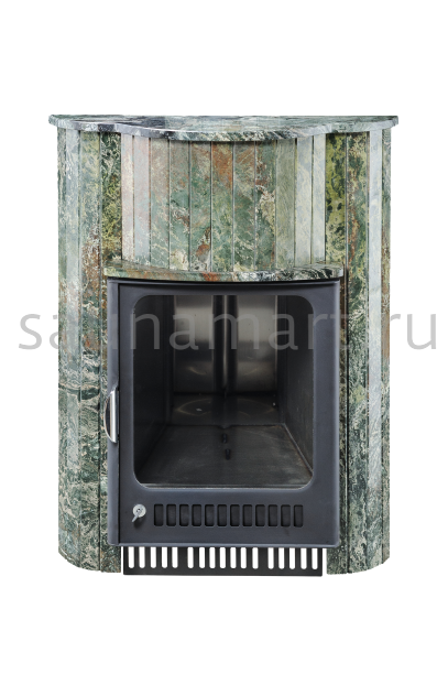 Для печи «Малютка» серии ПФ производитель V?hringer выпускает порталы из натурального мрамора, змеевика и жадеита. Облицовочные материалы поступают на завод в слэбах, заготовки разрезают на пластины, которые затем навешивают на печь.
