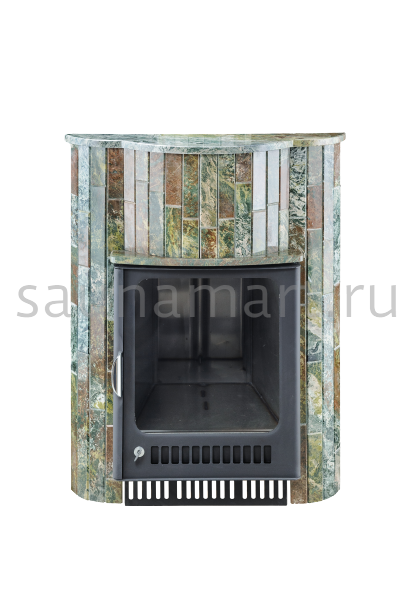 Портал "Оптима мини" из наборного жадеита от Ферингер — элегантное решение для декоративного оформления банной печи. Натуральный камень создает гармоничный переход между металлической дверцей и деревянной отделкой помещения, превращая печь в стильный элемент интерьера.