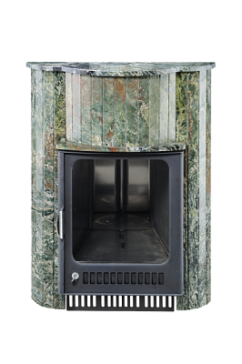 Для печи «Оптима» серии ПФ производитель V?hringer выпускает порталы из натурального мрамора, змеевика и жадеита. Облицовочные материалы поступают на завод в слэбах, заготовки разрезают на пластины, которые затем навешивают на печь.