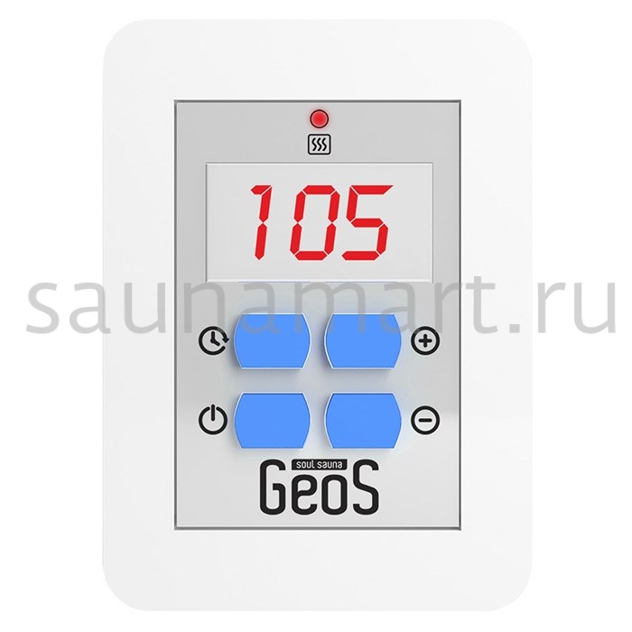 Для удобства использования электрокаменок «GeoS» рекомендуем приобрести пульт управления, подходящий по мощности. С его помощью можно программировать время включения и продолжительность работы электрокаменки, устанавливать комфортную для банщика температуру в парилке и параметры работы в режиме онлайн.