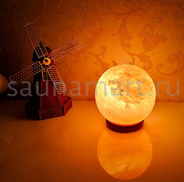 Гималайская соляная лампа в форме шара из натуральной пакистанской соли возрастом 300 млн лет. Содержит 84 микроэлемента, при нагреве выделяет полезные ионы, очищающие воздух и улучшающие микроклимат. Мягкое янтарное свечение создает уютную атмосферу и благотворно влияет на сон.