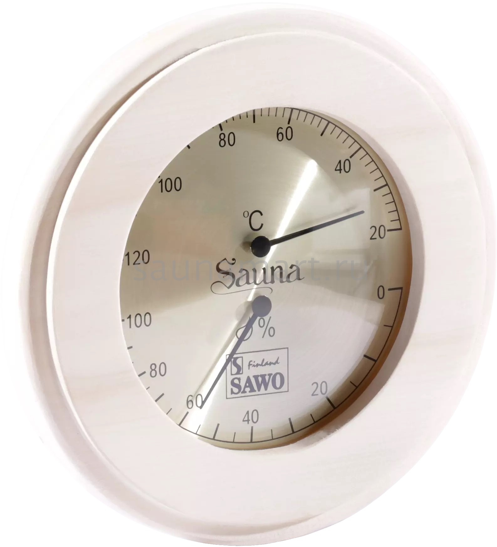 SAWO Термогигрометр 231-THР Закругленный термогигрометр Sawo отличается надёжностью и долговечностью. Он позволяет одновременно контролировать влажность и температуру в сауне. Корпус прибора выполнен из пиломатериалов лиственных пород (сосна) Термогигрометр впишется в интерьер любой сауны, украсив его. Температурная шкала термометра от 20 до 120 градусов. Диаметр, мм: 185 Материал: пиломатериалы лиственных пород
