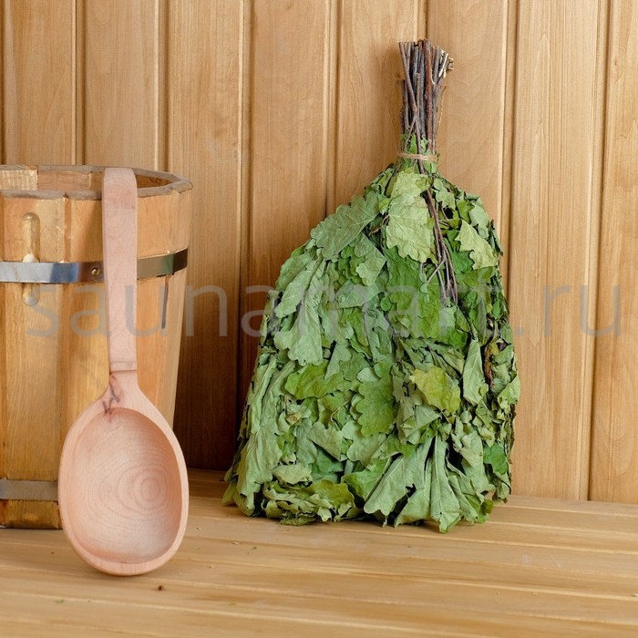 Листья и веточки дуба богаты эфирными маслами и дубильными веществами. Дубовый веник эффектно выглядит, ароматен, а благодаря особой форме резных и широких листьев он способен отлично впитывать пар.