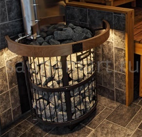 Ограждение создает безопасную зону вокруг каменки, одновременно выполняя функцию стильного элемента интерьера. Деревянная конструкция устойчива к условиям сауны.