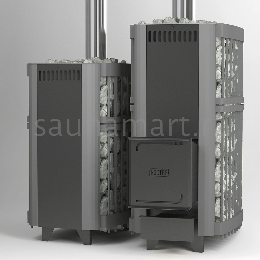 2. Теплоотдающие площади топки печей «Костёр» на 25-30 % больше, чем у аналогов. При этом, за счет особенностей конструкции поверхности эти нагреваются мощнее. Камни нагреваются сильнее. Верхняя часть дефлектора (наиболее нагретый элемент конструкции топки) изготовлена из нержавеющей стали и имеет вогнутую форму, благодаря чему является эффективной парообразующей поверхностью. Перегретый, по-настоящему легкий пар можно получать всего через 30 минут после затапливания печи.