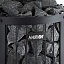 Компания Harvia для производства камней использует Скандинавский габбро-диабаз и предлагает камни двух размеров. Камни от 50 до 100 мм идеально подходят для устанавливаемых на стену каменок небольшой мощности и других электрических печей, их удобно укладывать между тэнами. Более крупные камни размером от 100 до 150 мм очень хорошо подходят для больших дровяных каменок.