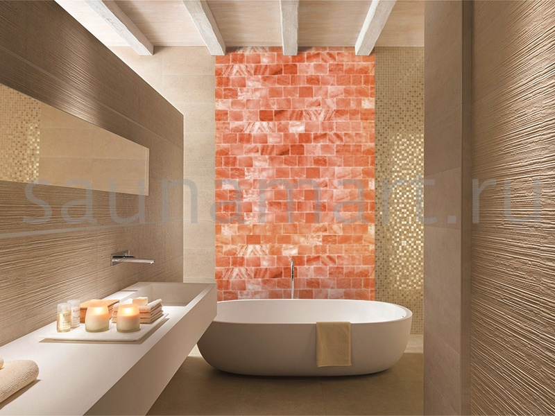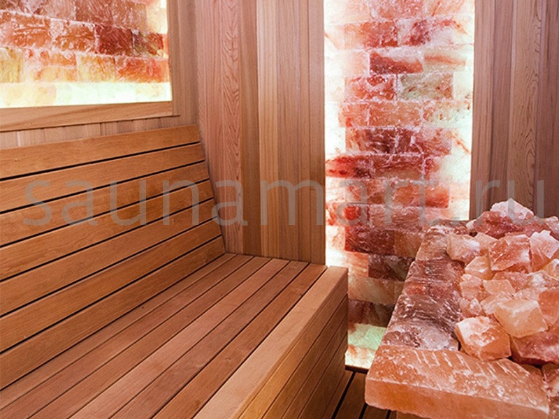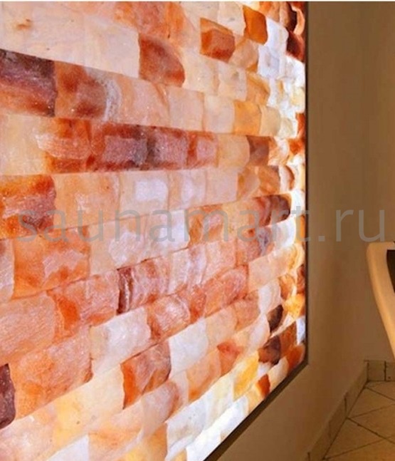Ручной работы кирпич из цельного куска розовой гималайской соли для создания уникальных интерьерных решений. Натуральная текстура и теплая поверхность дарят ощущение природной гармонии. Каждый кирпич обладает неповторимым рисунком и оттенком, что в сочетании с подсветкой создает уютную атмосферу в сауне или любом помещении.