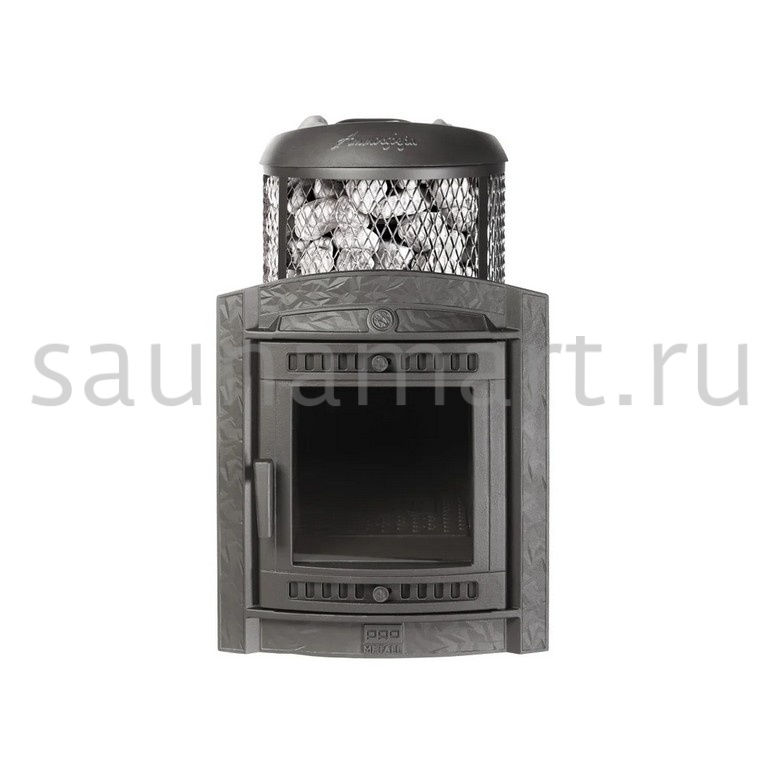 Модель с комбинированной облицовкой из нержавеющей сетки и ламелей. Особенность модели - открывающаяся дверь с ламелями. Это оригинальное решение обеспечивает быстрый прогрев парной.