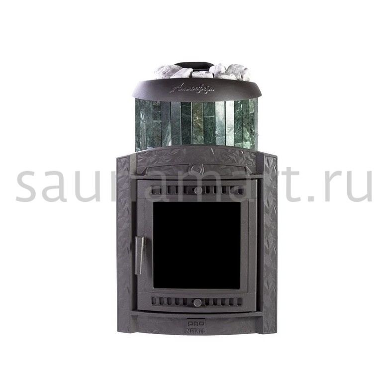 Практичная и компактная модель. Ламели из змеевика, расположенные по периметру внешней каменки, не только обладают отличными теплонакопительными свойствами, но и придают печи уникальный внешний вид.