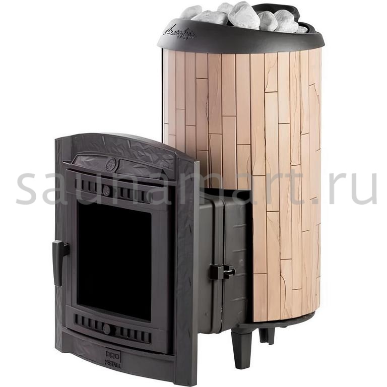 Модель с увеличенной каменкой и повышенной производительностью. Ламели, расположенные по периметру внешней каменки, не только обладают хорошими теплонакопительными свойствами, но и придают печи оригинальный внешний вид.