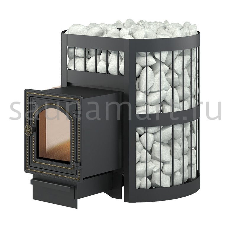 Банная чугунная печь «Легенда Стандарт 16 (ДТ-4С)» укомплектована чугунной не герметичной дверцей Везувий ДТ-4С с жаропрочным стеклом «SCHOTT ROBAX». Конвекционно-вентилируемый кожух «Стандарт» изготовлен из металлического прутка диаметром 6 мм, покрашенного черной термостойкой краской.