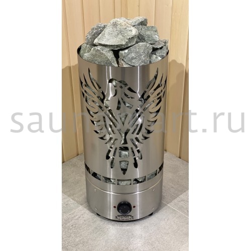 Цилиндрическая конструкция с высокой загрузкой камня (дает возможность согреваться от камня, получая мягкое тепло),