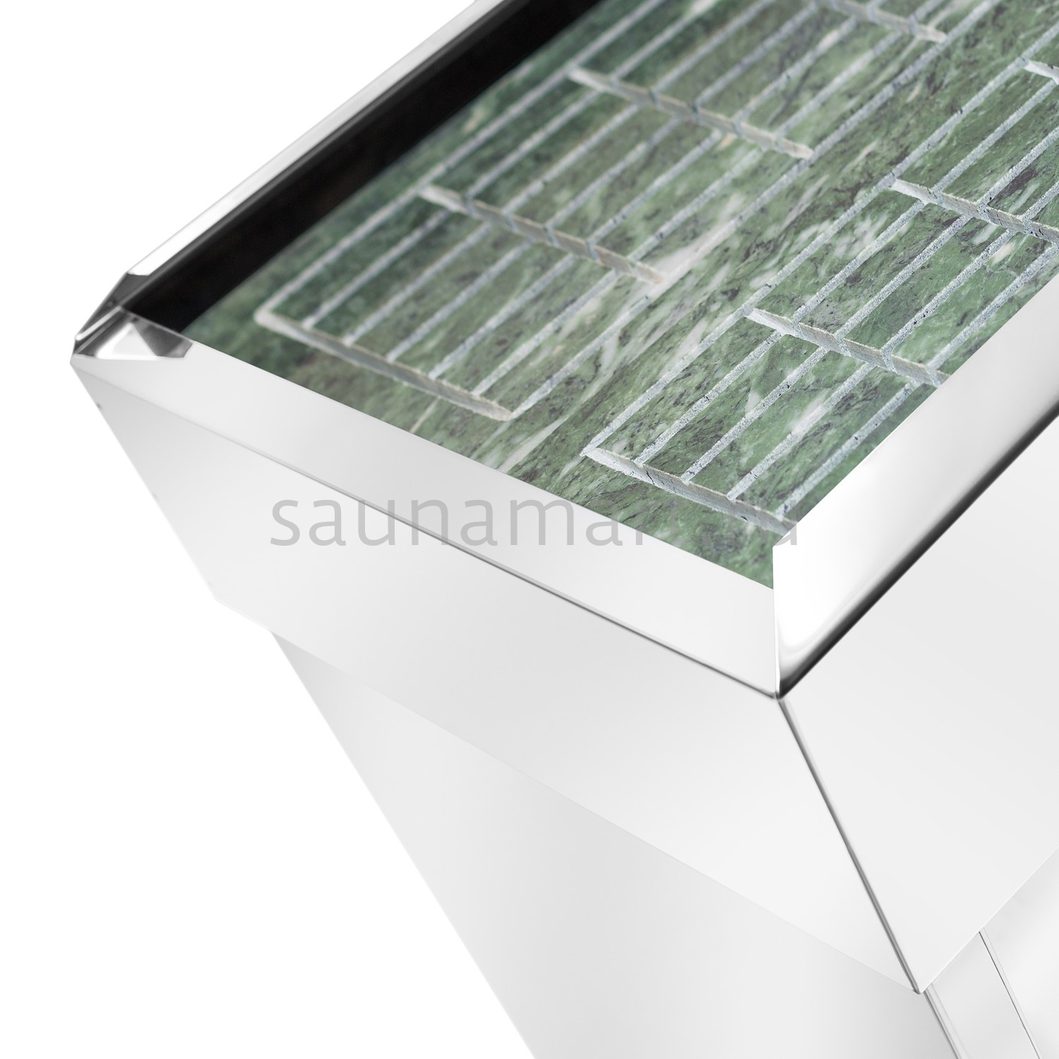 - Нагревательные плиты: Электрокаменка оздоровительной серии в комплекте с двумя горизонтальными нагревательными плитами из природного камня Змеевика. Каждая плита высотой 6 см, массой 15 кг, с распилами специальной формы, может использоваться в качестве испарителя. На такой плите вода испаряется постепенно и создает благоприятный и комфортный климат в бане. Змеевик уже долгие годы используется для изготовления печей для бань. Он хорошо нагревается, долго держит тепло и выдерживает резкие перепады температур, не растрескиваясь.