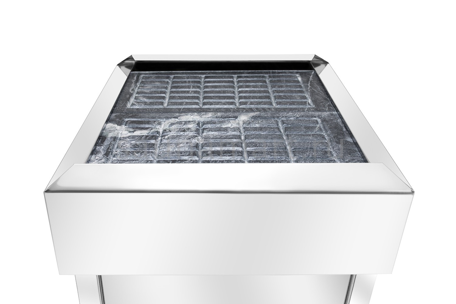 Электрокаменка оздоровительной серии в комплекте с двумя горизонтальными нагревательными плитами из природного камня Талькохлорита. Каждая плита высотой 6 см, массой 18 кг, с распилами специальной формы, и может использоваться в качестве испарителя. На такой плите вода испаряется постепенно и создает благоприятный и комфортный климат в бане.