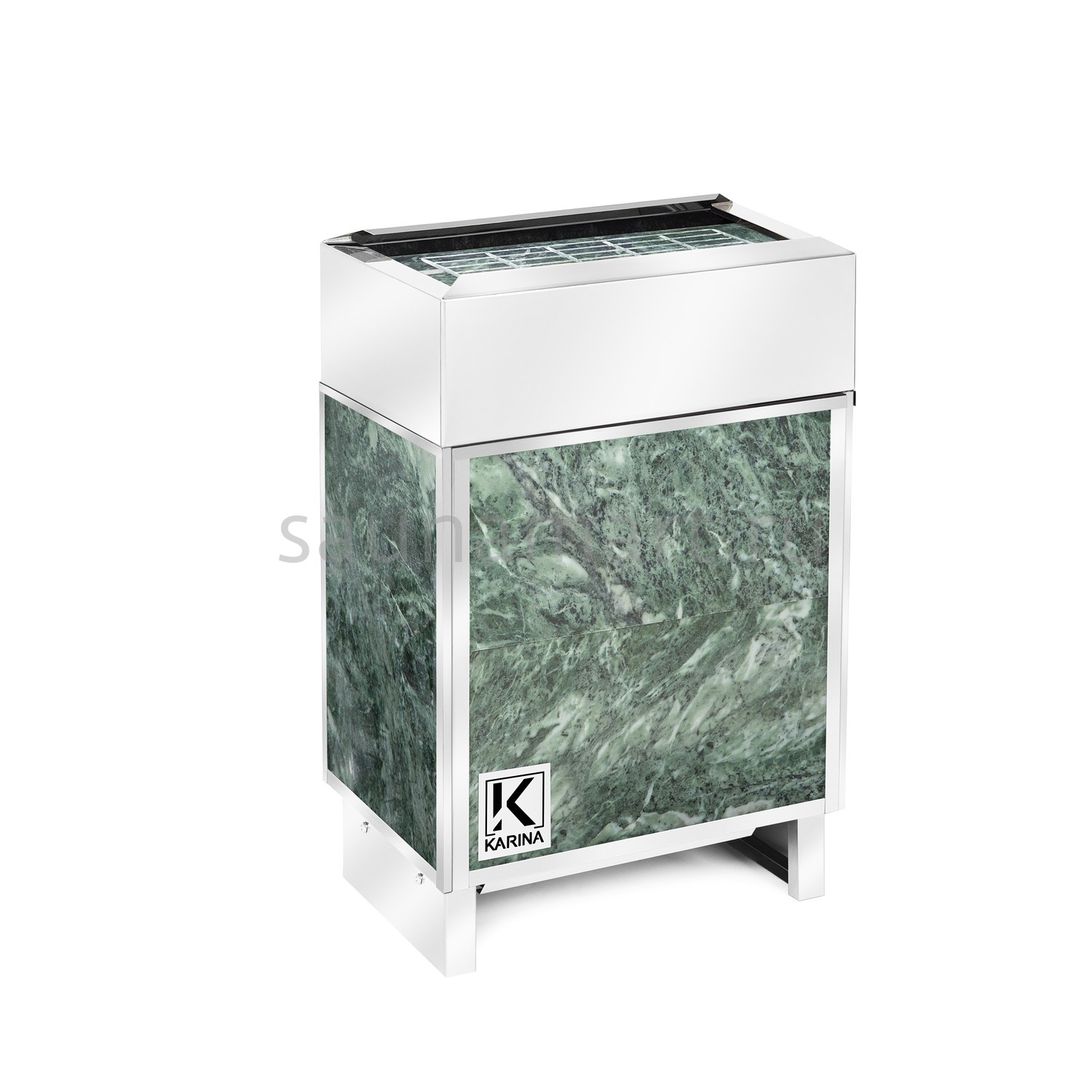 Электрическая печь KARINA Elite 8 mini Змеевик обладает оригинальным и современным дизайном. Благодаря своему стильному корпусу, она будет замечательно смотреться в интерьере любой бани. Мощность данной электрокаменки составляет 8 кВт, это позволяет ей прогревать помещение объемом до 12 куб. м.