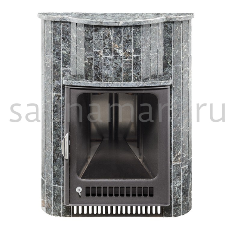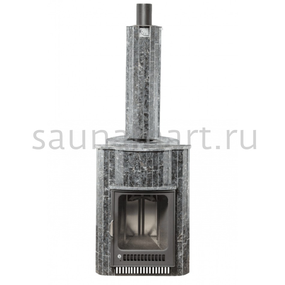 Для печи «Оптима» серии ПФ производитель V?hringer выпускает порталы из натурального мрамора, змеевика и жадеита. Облицовочные материалы поступают на завод в слэбах, заготовки разрезают на пластины, которые затем навешивают на печь.